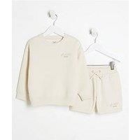 River Island Mini Mini Boys Sweatshirt Short Set - Ecru Material Content: Cotton: 100% Washing Instructions: Machine Washable Set of 2 Sweatshirt Crew neckline Embroidery Ame Le Nuit graphic Long sleeves Shorts Elasticated drawstring waistband Slip back pocket