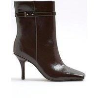 River Island Square Toe Heeled Ankle Boots - Brown Faux leather,Square toe,Decorative belt buckle,Side zip fastening,Skinny heel,Heel height: 8cm Faux leather Material Content: Upper: PU, Sole: Rubber Sole: Other Materials Upper: Other Materials Square toe Decorative belt buckle Side zip fastening Skinny heel Heel height: 8cm