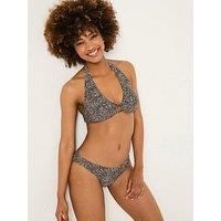 FatFace Raya Leaf Dot Bikini Top Size & Fit True to size - order your usual size Available in sizes 6 - 24 Details Raya Leaf Dot Bikini Top by FatFace Black Tie halter neck Tie back fastening Plunge neckline O-ring detail Leaf dot print Breathable stretch fabric Products must be returned unworn, unwashed, in their original condition with all tags and original order packing slip We reserve the right to refuse returns that show signs of wear or do not meet the above criteria Material & Care Material Conte...