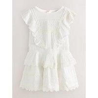 smALLSAINTS Baby Girls Dress Size & Fit Available in sizes 12-18 Months - 5-6 Years Details Baby Girls Dress by smALLSAINTS White Round neck Sleeveless Shirred waistband Back zip fastening Frill details Decorative trims Material & Care Material Content: Main: 100% Viscose,Lining: 100% Cotton Washing Instructions: Machine Washable