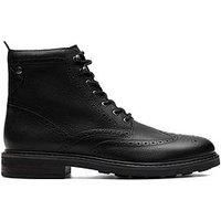Newford Lace is an easy-to-wear casual boot that combines rugged design with crafted elements. Featuring rich heritage leathers that age beautifully, this modern brogue profile offers a distinctly Clarks feel. A Contour Cushion footbed provides unrivalled underfoot comfort, while the TR sole guarantees durability and robustness. Premium black leather uppers - Contour Cushion footbed supports every step - 4-eyelet lace-up system offers a secure fit - Heel pull assists easy on/off - Faux welt detail enhances the crafted look - Metallic Glastonbury Tor branding adds a distinctive design detail - TR (thermoplastic rubber) sole delivers excellent grip | Clarks Men's Newford Lace Boot Black Leather Ankle Boots, Lace Up | Size: 7-Standard Fit - Manufacturers part numbers: 261838427|Clarks_5063421506396