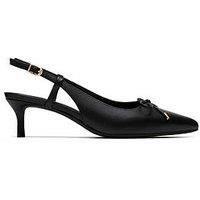 Clarks Zarey Bow Leather Sling Back Court - Black Slingback shoe Zarey Bow calls on a sleek pointed-toe shape and a timeless, sculpted heel for sleek, elegant style. Crafted from premium materials in versatile and seasonal colours, it makes use of our ultra-comfortable Contour Cushion footbed for all-day underfoot support. - Premium leather upper with bow and gold aglet details - Slingback strap with adjustable buckle fastening delivers a secure, custom fit - Trending pointed toe shape - Breathable leat...