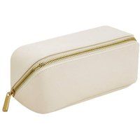 Width: 21cm. Length: 8cm. Height: 8cm. Lining: PU, Soft Touch. Fastening: Metal Zip. Multi-Purpose, Opens Out Flat, Tearaway Label. Design: Plain. Compartments: 1 Main Compartment. Capacity: 1.3L. Sustainability: Amfori, BSCI, REACH. Shell: Leather-Look PU, Saffiano Fine Grain. | Bagbase Mini Open Flat Cosmetic Case in Oyster - Manufacturers part number: Bagbase_5063425810062