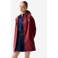 Hunter Jo Pu Raincoat Size & Fit True to size - order your usual size Relaxed fit Available in sizes XS - XXL Details Jo Pu Raincoat by Hunter Dark Red High neckline Silicone Hunter badge Branded snap buttons Side pockets Hooded With adjustable drawcord Material & Care Material Content: 100 % Polyester with PU Coating