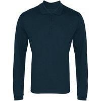 100% Polyester. Fabric: Pique. Design: Plain. Neckline: Knitted, Turn Down Collar. Sleeve-Type: Long-Sleeved. Cuff: Ribbed. Fabric Technology: Coolchecker, Moisture Wicking, Quick Dry. 3 Button Placket, Easy-Care, Panel Detail, Side Vents. Length: Long. 155gsm. Sustainability: REACH, Sedex, WRAP Certified. | Premier Men Coolchecker Pique Long-Sleeved Polo Shirt in Navy | Size: 4X-Large