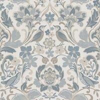 Design: Birds, Flowers, Leaves, Vintage. Design Repeat: 53cm. Easy Application, Paste the Paper, Straight Pattern Match. Finish: Matte, Textured. | World of Wallpaper Folk Floral Textured Wallpaper in Blue