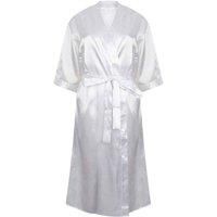 Material: 95% Polyester, 5% Elastane. Fabric: Satin. Design: Plain. 95gsm. Sleeve-Type: 3/4 Sleeve. Neckline: Open. Self Fabric. Length: Below Knee Length. Pockets: 2 Side Pockets. Fastening: Tie Belt. Sustainability: Amfori, BSCI, Oeko-Tex Standard 100 Certified, Sedex. Style: Kimono. Suitable for: Printing, Sublimation. | Towel City Women's Satin Robe in White | Size: 8-10