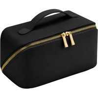 Width: 24cm. Height: 12cm. Length: 12cm. Lining: PU, Soft Touch. Carry Handle, Metal Zip Pull, Multi-Purpose, Opens Out Flat, Tearaway Label. Fastening: Two Way Zip. Design: Plain. Compartments: 2 Main Compartments. Pockets: Internal Zip Pocket. Capacity: 3.5L. Sustainability: Amfori, BSCI, REACH. Shell: Leather-Look PU, Saffiano Fine Grain. | Bagbase Boutique Open Flat Cosmetic Case in Black - Manufacturers part number: Bagbase_5063470055821