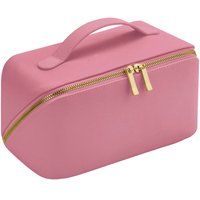 Width: 24cm. Height: 12cm. Length: 12cm. Lining: PU, Soft Touch. Carry Handle, Metal Zip Pull, Multi-Purpose, Opens Out Flat, Tearaway Label. Fastening: Two Way Zip. Design: Plain. Compartments: 2 Main Compartments. Pockets: Internal Zip Pocket. Capacity: 3.5L. Sustainability: Amfori, BSCI, REACH. Shell: Leather-Look PU, Saffiano Fine Grain. | Bagbase Boutique Open Flat Cosmetic Case in Dusky Pink - Manufacturers part number: Bagbase_5063470055838