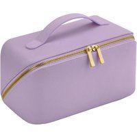 Width: 24cm. Height: 12cm. Length: 12cm. Lining: PU, Soft Touch. Carry Handle, Metal Zip Pull, Multi-Purpose, Opens Out Flat, Tearaway Label. Fastening: Two Way Zip. Design: Plain. Compartments: 2 Main Compartments. Pockets: Internal Zip Pocket. Capacity: 3.5L. Sustainability: Amfori, BSCI, REACH. Shell: Leather-Look PU, Saffiano Fine Grain. | Bagbase Boutique Open Flat Cosmetic Case in Lilac - Manufacturers part number: Bagbase_5063470055845