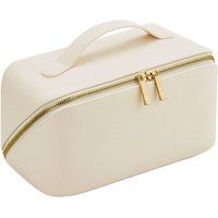 Width: 24cm. Height: 12cm. Length: 12cm. Lining: PU, Soft Touch. Carry Handle, Metal Zip Pull, Multi-Purpose, Opens Out Flat, Tearaway Label. Fastening: Two Way Zip. Design: Plain. Compartments: 2 Main Compartments. Pockets: Internal Zip Pocket. Capacity: 3.5L. Sustainability: Amfori, BSCI, REACH. Shell: Leather-Look PU, Saffiano Fine Grain. | Bagbase Boutique Open Flat Cosmetic Case in Oyster - Manufacturers part number: Bagbase_5063470055852
