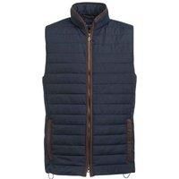 Shell: Polyester. Fabric: Repreve Polyester. Design: Quilted. Fabric Technology: Showerproof. Contrast Binding, Faux Suede Binding, Padded. Sleeve-Type: Sleeveless. Neckline: Standing Collar. Pockets: 1 Inner Pocket, 2 Front Pockets, Zip. Fastening: Full Zip, Two Way Zip. Hem: Adjustable, Drawcord, Toggle. Sustainability: Ethical Trading Initiative, Made from Materials, Oeko-Tex Standard 100 Certified, Oeko-Tex STep, Sedex. | Brook Taverner Men Tampa Gilet in Navy | Size: Small