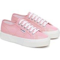 Upper: Cotton Canvas. Insole: Branded. Outsole: Natural Rubber, Vulcanised Rubber. 6 Eyelets. Fabric Technology: Durable. Branded Eyelets, Branded Heel. Platform. Heel Height: 3.5cm. Cut: Low. Design: Logo, Shiny. Toe Style: Round. Fastening: Lace Up. | Superga Women's 2740 Lame Platform Trainers in Pink | Size: 5