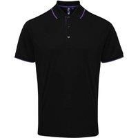 100% Polyester. Fabric: Pique. Design: Contrast Detail. Cuff: Contrast, Ribbed. Fastening: Pull Over. Neckline: Ribbed Collar, Turn Down Collar. Sleeve-Type: Short-Sleeved. Fabric Technology: Moisture Wicking. 3 Button Placket, Contrast Neck Tape, Easy-Care, Inner Placket, Self-Coloured Buttons, Side Panels, Side Vents. 155gsm. Sustainability: REACH, Sedex, WRAP Certified. | Premier Men Coolchecker Contrast Pique Polo Shirt in Black | Size: 4X-Large