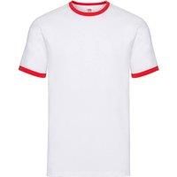 100% Cotton. Fabric: Lycra. Design: Ringer. Neckline: Contrast, Crew Neck, Ribbed. Cuff: Contrast, Ribbed. Sleeve-Type: Short-Sleeved. Cut Out Label, Taped Neck, Twin Needle Stitching. 160gsm. Sustainability: Better Cotton Initiative, No Child Or Forced Labour Used, Oeko-Tex Standard 100 Certified, WRAP Certified. | Fruit of the Loom Men Ringer T-Shirt in White | Size: Small - Manufacturers part number: Fruit Of The Loom_UTRW9801_whitered_MP-7813