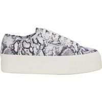 Upper: Cotton Canvas. Lining: Unlined. Insole: Branded. Outsole: Vulcanised Rubber. 6 Eyelets. Aluminum Eyelets, Branded Eyelets, Branded Heel, Cotton Lace, Jacquard Label, Lightweight. Low Heel. Heel Height: 4cm. Cut: Low Cut. Design: Logo, Snake Print, Two Tone. Toe Style: Round. Fastening: Lace Up. | Superga Women's 2790 Snake Print Trainers in White | Size: 5