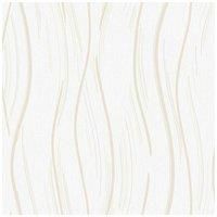 Design: Line, Matte, Shimmer, Wave. Design Repeat: 53cm. Finish: Metallic, Textured. Offset Pattern Match, Paste the Paper. | World of Wallpaper Shimmer Wave Textured Wallpaper in Beige