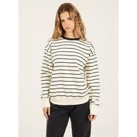 Update your casual staples with this sweatshirt from Brave Soul. Made from a soft, cotton-rich fabric, it offers comfort and easy wear. Featuring long sleeves with drop shoulders and a classic crew neck, this sweatshirt is finished with all-over stripes, a contrast neckline, and ribbed hem and cuffs for a relaxed yet stylish everyday look. Model wears UK size S. | Brave Soul Women's Classic Stripe Crew Neck Sweatshirt in Cream | Size: XS - Manufacturers part number: Brave Soul_5063487087259