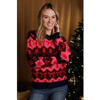 Bring festive charm to your winter wardrobe with this Christmas jumper from Brave Soul. Featuring a crew neck and an all-over festive fairisle design, this piece is finished with contrast trims for a playful touch. The ribbed neck, cuffs, and hem ensure a snug fit, perfect for seasonal celebrations and cosy days. Model wears UK size S. | Brave Soul Women's Fairisle Christmas Jumper in Navy | Size: Medium - Manufacturers part number: Brave Soul_5063487226559