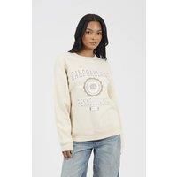 Add effortless style to your casual wardrobe with this sweatshirt from Brave Soul. Designed with a classic crew neck, long sleeves, and relaxed drop shoulders, it features a bold, large front graphic for a statement look. Finished with ribbed cuffs and hem, this sweatshirt combines comfort, versatility, and street-inspired style for everyday wear. Model wears UK size S. | Brave Soul Women's Crew Neck Graphic Print Sweatshirt in Cream | Size: XS - Manufacturers part number: Brave Soul_5063487243891