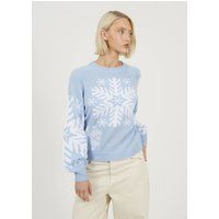 Add a festive touch to your casual wardrobe with this Christmas jumper from Brave Soul. Designed with a relaxed, loose fit, it features a classic crew neckline and ribbed neck and cuffs for a snug finish. The standout snowflake graphic across the chest and sleeves brings a seasonal charm, perfect for cosy winter styling. Model wears UK size S. | Brave Soul Women's Crew Neck Snowflake Christmas Jumper in Pale Blue | Size: Large - Manufacturers part number: Brave Soul_5063487261154