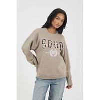 Make a bold statement with this sweatshirt from Brave Soul. Featuring a classic crew neck and long sleeves, this piece is elevated by a striking leopard print slogan across the chest. Ribbed collar, cuffs, and hem add a snug finish, making it the perfect blend of comfort and attitude for off-duty days. Model wears UK size S. | Brave Soul Women's Slogan Crew Neck Sweatshirt in Taupe | Size: Small - Manufacturers part number: Brave Soul_5063487262335