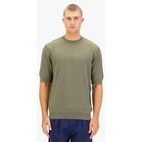 This time-less short sleeve knitted t-shirt from LUKE is the perfect addition to your winter wardrobe. This knitted tee is fitted with a stylish ribbed collar. cuff and hem. The look is then signed off with the iconic LUKE 1977 gloss pewter sew on bar on the left hem. -Iconic LUKE 1977 sew on bar in dark pewter gloss -Iconic LUKE vintage trim tape -Ribbed neck. hem and cuff | Luke 1977 Men Farrington Knitted T-shirt in Green | Size: large