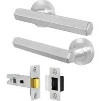 Our door handle and latch pack is ideal for any internal doors within your home or office. We supply this as a complete door pack with door handles and heavy duty tubular latch, saving you time and money shopping around. Our door handle is made from strong aluminium, with a screw-on rose that gives a clean tidy finish on the door as all the fixings are hidden. Bolt-through fixings ensure a solid, reliable fit to your door and mean our handle won't come loose even in high traffic areas. The tubular latc...