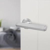 Our door handle pack is ideal for any internal doors within your home or office. Our door handle is made from strong aluminium, with a screw-on rose that gives a clean tidy finish on the door as all the fixings are hidden. Bolt-through fixings ensure a solid, reliable fit to your door and mean our handle won't come loose even in high traffic areas. Our door handle packs contain everything you need to fit to your door, so you can just unbox and start fitting. | AFIT Satin Door Handle Satin Nickel Intern...