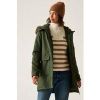 The Sabinka women's waterproof jacket from Regatta blends chic design with reliable protection. Made from peached polyester with Isotex 10,000 technology, it delivers full weatherproofing for wet conditions. Thermoguard insulation ensures warmth, while a fleece-lined hood with faux fur trim adds comfort. An adjustable drawcord waist enhances style and practicality, making it a versatile choice for everyday wear. - Manufacturers part number: RWP455