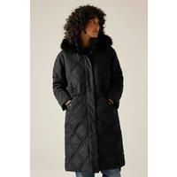 The Freyla women's insulated jacket from Regatta offers a stylish edge to everyday practicality. Made from durable micro poplin with Thermoguard insulation, it provides reliable warmth. The removable faux fur trim and adjustable waist create a refined silhouette, while lower pockets with snap fastenings ensure functional storage for day-to-day wear.