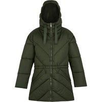 The Rusey women's insulated jacket from Regatta offers style and practicality for chilly days. Made with durable micro Taslan fabric, it features Warmloft insulation for cosy warmth. An adjustable drawcord waist and grown-on hood provide a tailored fit, while zipped lower pockets and an internal security pocket add functionality. | Regatta Women's Rusey Water-Repellent Insulating Baffled Jacket in Green | Size: 12 - Manufacturers part number: RWN386