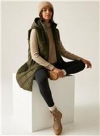 The Rurietta Longer Length women's bodywarmer from Regatta is a stylish layering piece for cooler days. Featuring Warmloft down-touch padding and detailed stitching, it provides lightweight warmth. A grown-on hood and adjustable shockcord waist offer a flattering fit, while zipped lower pockets add practicality for casual outings. | Regatta Women's Rurietta Hooded Baffled Longline Gilet Bodywarmer in Green | Size: 16 - Manufacturers part number: RWB181