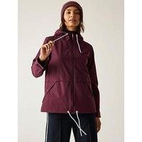 The Bayletta II women's jacket from Regatta is designed to elevate your everyday style with weatherproof functionality. The waterproof and breathable Isotex 10000 peached polyester fabric features taped seams for complete waterproofing. There's a taffeta lining for a soft feel. Adjust the cuffs with Velcro fastening to your preference, and utilise the two pockets with stylish snap fastenings. Versatile and practical, the Bayletta II jacket is finished with an adjustable hood for customisable coverage. | Regatta Women's 'Bayletta II' Waterproof Jacket in Purple | Size: 8 - Manufacturers part numbers: RWW448|WJI45