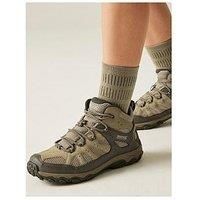 The Edgepoint IV Mid women's walking boots from Regatta deliver durability, comfort and stability for outdoor adventures. Water-resistant synthetic uppers with ISOTEX membranes provide breathable waterproof protection, while TECFOAM insocks cushion underfoot. Padded collars and reinforced toe caps enhance comfort and durability, and lightweight TPR outsoles ensure excellent grip, making them ideal for rugged terrain or everyday explorations. | Regatta Women's Edgepoint Waterproof Breathable Mid Walking Boots in Beige | Size: 6 - Manufacturers part numbers: RWF895|WUY0I