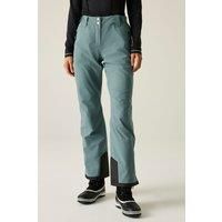 The Dare 2b Effused Ski Pant. Made with our most waterproof and breathable fabric with a water repellent finish to shield you from the elements. Featuring detachable braces and an adjustable waistband to give a fine-tuned fit. Engineered for unrestricted movement with articulated knee design. Complete with ski features including powder-blocking snowgaitors and zip pockets to stash essentials. This product 5 plastic bottles. | Dare 2b Women's 'Effused II' Ski Pants in Dark Grey | Size: 20 - Manufacturers part number: DWW486