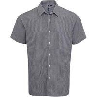 100% Cotton. Fabric: Poplin, Yarn Dyed. Design: Gingham. Hem: Curved. Sleeve-Type: Short-Sleeved. Neckline: Soft Touch, Turn Down Collar. Clear Buttons. Fit: Semi-Fitted. 115gsm. Sustainability: Amfori, BSCI, REACH, Sedex, WRAP Certified. | Premier Men Gingham Cotton Short-Sleeved Shirt in Black | Size: 2X-large