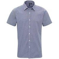 100% Cotton. Fabric: Poplin, Yarn Dyed. Design: Gingham. Hem: Curved. Sleeve-Type: Short-Sleeved. Neckline: Soft Touch, Turn Down Collar. Clear Buttons. Fit: Semi-Fitted. 115gsm. Sustainability: Amfori, BSCI, REACH, Sedex, WRAP Certified. | Premier Men Gingham Cotton Short-Sleeved Shirt in Navy | Size: X-Small