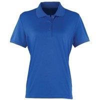 100% Polyester. Fabric: Pique. Design: Plain. Neckline: Knitted, Ribbed, Taped, Turn Down Collar. Cuff: Ribbed. Sleeve-Type: Short-Sleeved. Hem: Twin Needle Stitch. Fabric Technology: Coolchecker, Dye-Retention, Moisture Wicking, Quick Dry. 3 Button Placket, Easy-Care, Long Length, Panel Detail, Self-Coloured Buttons, Side Vents, Twin Needle Sleeves. 155gsm. Sustainability: REACH, Sedex, WRAP Certified. | Premier Women's Coolchecker Pique Polo Shirt in Blue | Size: 16