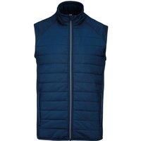 Material: Elastane, Polyamide, Polyester. Fabric: Ripstop. Design: Quilted. Fabric Technology: Showerproof. Access For Dration, Contrast Zip, Elasticated Arm Holes, Padded. Sleeve-Type: Sleeveless. Neckline: Standing Collar. Pockets: 2 Front Pockets, Zip. Fastening: Full Zip. Hem: Elasticated. Sustainability: Amfori, BSCI, Oeko-Tex Standard 100 Certified. | Proact Men's Twin Fabric Sports Gilet in Navy | Size: 2XL