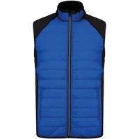 Material: 90% Polyester, 10% Elastane. Fabric: Ripstop. Design: Contrast Panel, Quilted. Fabric Technology: Showerproof. Elasticated Arm Holes. Sleeve-Type: Sleeveless. Neckline: Standing Collar. Pockets: 2 Front Pockets, Zip. Fastening: Full Zip. Hem: Elasticated. Sustainability: Amfori, BSCI, Oeko-Tex Standard 100 Certified. | Proact Men's Dual Fabric Padded Sports Body Warmer in Bright Blue | Size: Medium