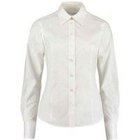 85% Cotton, 15% Polyester. Design: Plain. Fastening: Button-Down. Cuff: Buttoned. Hem: Curved. Neckline: Fused Stand Up Collar. Sleeve-Type: Long-Sleeved. Back Yoke, Curved Panels, Double Folded Seams, Princess Seams, Woven Back Neck Label. Fit: Tailored. 125gsm. Sustainability: ACCORD, Amfori, BSCI, Oeko-Tex Made in Green, Oeko-Tex Standard 100 Certified, Oeko-Tex STep, REACH, Sedex, WRAP Certified. | Kustom Kit Women's Premium Oxford Tailored Long-Sleeved Shirt in White | Size: 12