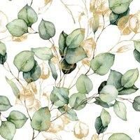 Material: Paper. Width: 53cm. Length: 10m. Design: Eucalyptus, Leaves, Metallic. Design Repeat: 53cm. Easy Application, Good Lightfastness, Paste the Paper, Straight Pattern Match. Finish: Matte, Smooth. | Muriva Eucalyptus Wallpaper in Bright Green