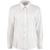Fused collar. Classic collar Semi fitted. Long sleeves. Adjustable cuff. Double folded seams. Rounded bottom. Front and back darts. Spare button. Back yoke. 70% cotton, 30% polyester. | Kustom Kit Women's Workplace Long Sleeve Oxford Blouse in White | Size: 18