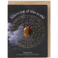 Material: Card. Height: 3cm. Width: 2cm. Design: Astrology Wheel, Crescent Moon, Text. Contents: 1 Envelope, 1 Tigers Eye. Depth: 0.9cm. Blank Inside. Packaging: Plastic Bag.