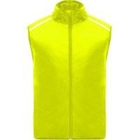 100% Polyester. Design: Contrast Detail. 70gsm. Fabric Technology: Breathable, Lightweight, Windproof. Cuff: Binded, Elasticated. Chin Guard, High-Vis, Tearaway Label. Neckline: High-Neck. Sleeve-Type: Sleeveless. Pockets: 2 Side Pockets. Fastening: Full Zip. Hem: Binded, Elasticated. Sustainability: Oeko-Tex Standard 100 Certified. Packaging: Polybag. Suitable for: Screen-Printing. | ROLY Jannu Lightweight Running Body Warmer in Bright Yellow | Size: X-Large