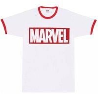100% cotton. Design: logo. Neckline: contrast, crew neck. Cuff: contrast. Sleeve-type: short-sleeved. 100% officially licensed. S: 37 in. M: 40 in. L: 43 in. Xl: 46 in. Xxl: 49 in. | Marvel Comics Men Logo T-Shirt in White | Size: large