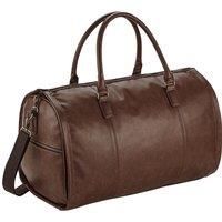 Lining: Pinstripe. Width: 56cm. Height: 28cm. Capacity: 30L. Depth: 29cm. Pockets: 1 External Zip Pocket. Compartments: 1 Main Compartment, Shoe Compartment. Adjustable Length, Tearaway Label. Design: Plain. Fastening: Zip. | Quadra Men's Nuhide Duffle Bag in Tan