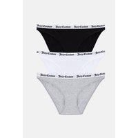 Juicy Couture Women's 3 Pack Cotton Brief With Branded Jacquard Elastic Multi- Black/Grey Marl/White | Size: Medium