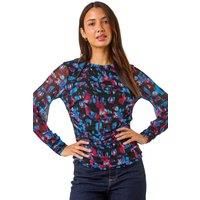 Mesh Printed Stretch Top from Roman. Add a touch of glamour to your wardrobe with this mesh print top, perfect for the Autumn/Winter season. The round neck and long jersey cuffed sleeves create a stylish look, while the hip length and ruching at the side seams add flattering details. The all over mesh print combined with a printed jersey body makes for a unique and eye catching piece. Pair with tailored trousers and heeled boots for a chic and sophisticated ensemble! | Roman Women's Mesh Printed Stretch Top in Red | Size: 20 - Manufacturers part number: Roman_5063566003446